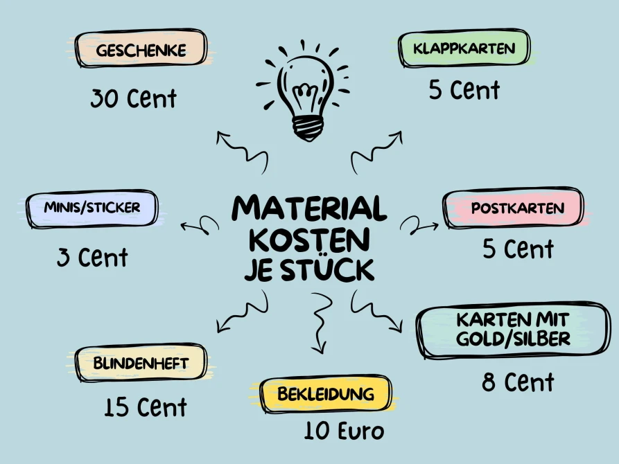 Du möchtest gerne spenden und fragst dich wie hoch die Materialkosten sind? Hier findest du eine Übersicht. (Ohne Versandkosten)